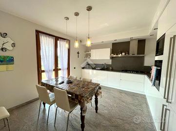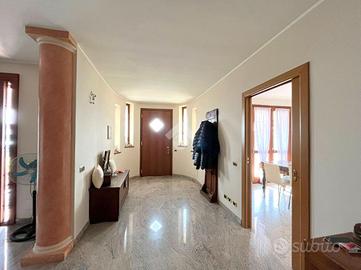 Piano terra - ingresso con porta blindata, cucina abitabile, soggiorno luminoso dalle generose metrature, disimpegno che conduce alla zona notte con due camere da letto una camera matrimoniale con cabina armadio, bagno padronale con finestra e bagno di servizio con box doccia.