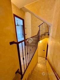 Al piano terreno troveremo una grande sala, una cucina abitabile e un bagno per gli ospiti. Facendo una mezza rampa di scale accediamo ad un altra area di casa composta da soggiorno, camera da letto e servizio. Questo spazio si presta, eventualmente,ad essere uno studio o ad accogliere un membro della famiglia ricreando un vero e proprio bilocale.