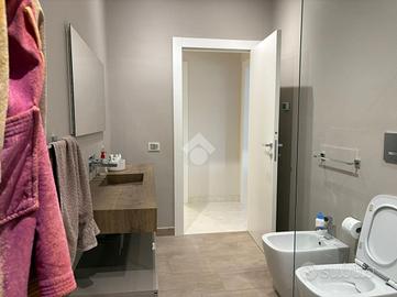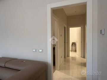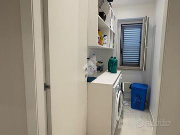 L'ingresso si apre su un ampio soggiorno luminoso grazie alle grandi vetrate, in continuità con la cucina open space dotata di comodo ripostiglio e accesso diretto all'esterno.