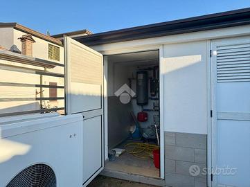 La zona notte comprende tre camere, di cui una matrimoniale con cabina armadio e bagno privato, oltre a bagno padronale e pratica zona lavanderia. All'esterno sono presenti una zona di accumulo, un ulteriore bagno con doccia e un deposito.