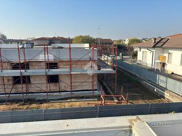 VILLETTA A4 mq 131 di prossima costruzione: SU UN UNICO LIVELLO soggiorno-cucina, una camera matrimoniale con cabina e bagno in camera, due camere doppie, bagno e ripostiglio. Garage doppio e giardino angolare ideale per piscina. Completamente elettrica.