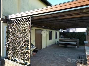 * Ampio portico coperto, perfetto per pranzi e cene all'aperto durante la bella stagione, con camino per piacevoli momenti conviviali.