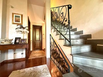 Soluzione disposta su due livelli fuori terra e un piano interrato, caratterizzata da spazi luminosi e ben distribuiti. L'accesso all'abitazione è contraddistinto da un suggestivo viale d'ingresso alberato.