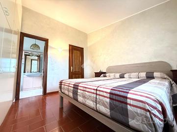Al primo piano si sviluppa la zona notte composta da due camere matrimoniali, una dotata di bagno padronale, una camera doppia e un disimpegno con armadio a muro. A completamento del primo piano troviamo un secondo bagno finestrato dotato di box doccia.