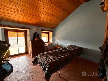 L'abitazione principale si sviluppa su più livelli e presenta dettagli architettonici di pregio, come le volte a mattoni a vista che caratterizzano la cucina e il salone al piano terra. L'ampia cucina, separata dal salone, è dotata di tutti i comfort, mentre il salone, altrettanto spazioso, dispone della predisposizione per una stufa o camino grazie alla canna fumaria. Completano il piano terra un generoso bagno a servizio della zona giorno e una scala a vista che conduce al piano superiore.