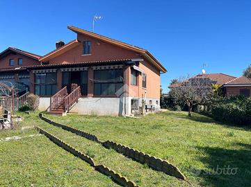 Bruino - Via Alfieri, in posizione tranquilla e panoramica immersa nel verde e con splendida vista sulle montagne, villa libera su tre lati con giardino privato che circonda l'abitazione. La proprietà, costruita nel 1978, è stata oggetto di interventi nel 2000 che hanno interessato il piano abitativo, l'impianto elettrico e l'ampliamento del terrazzo. L'ingresso si apre sul soggiorno con accesso diretto al terrazzo; il terrazzo verandato rappresenta uno spazio vivibile tutto l'anno e conduce al giardino privato disposto sui tre lati della casa. La cucina è abitabile e ben organizzata. La zona notte è composta da studio, ampia camera matrimoniale con uscita sul terrazzo, seconda camera matrimoniale e bagno finestrato dotato di doccia e vasca. Una scala a chiocciola collega i vari livelli dell'abitazione. Al piano superiore è presente una mansarda open space ancora da rifinire, ideale per creare ulteriori ambienti secondo le proprie esigenze. Il piano interrato, accessibile sia internamente sia tramite scala esterna, ospita una tavernetta con cucina, un bagno con doccia, due locali di sgombero, una cantina e un locale tecnico. Completano la proprietà tre posti auto esterni. Soluzione ideale per chi cerca tranquillità, spazi generosi e indipendenza, a pochi minuti dai principali servizi.