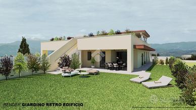 L'immobile si apre su un'ampia zona giorno open space inondata di luce naturale grazie a una grande vetrata che si affaccia sull'area esterna, caratterizzata da un ulteriore portico e un giardino che circonda la villa su tre lati, con la possibilità di realizzare una piscina, rendendo questa zona un'oasi di tranquillità e relax. Camera padronale con bagno privato, camera doppia, camera singola, secondo bagno e zona lavanderia completano il piano terra. Grande taverna con bagno al piano interrato e garage triplo completano l 'immobile.