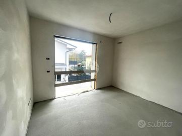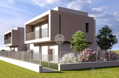 BUTTAPIETRA - In costruzione NUOVA Porzione di Bifamiliare esposta a NORD/EST/SUD su due piani fuori terra con giardino, composta da soggiorno con cucina a vista, studio, bagno finestrato, ripostiglio/sottoscala e garage doppio in larghezza al piano terra. Al piano superiore camera matrimoniale con terrazza, camera doppia, camera singola (entrambe con sfogo sul balcone) e bagno finestrato. Materiali e finiture di primissimo livello con possibilità di personalizzazione. Impianto fotovoltaico da 4,50 KW. Tecnologie costruttive di ultimissima generazione per un elevato comfort abitativo ed un importante risparmio energetico. Consegna prevista per la fine del 2026. Classe A4 (valore di progetto). Info, progetti e capitolato in agenzia.