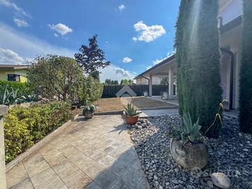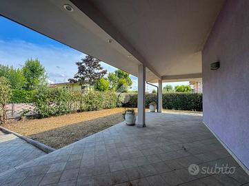 Esternamente giardino e accesso carraio in comune con l'unità al primo piano. Portico su due lati di proprietà.