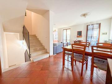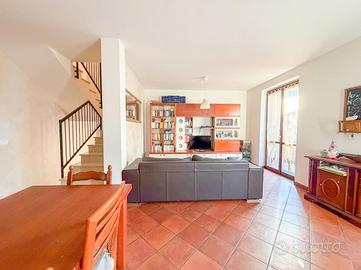 Trattasi di porzione di bifamiliare disposta su più livelli. Internamente a piano terra, si sviluppa la zona giorno composta da un ampio soggiorno con cucina separata abitabile con accesso diretto allo spazio esterno sul retro. Completa il primo bagno completo di sanitari principali e doccia.