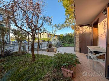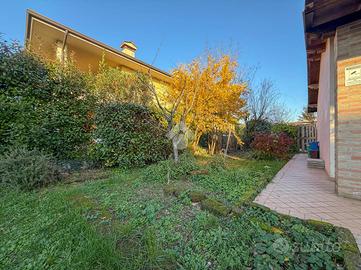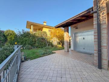 Esternamente la soluzione è libera su tre lati, possiamo trovare un comodo portico che precede l'ngresso, lateralmente e sul retro un ampio giardino vivibile. Accesso carraio e pedonale indipendenti.