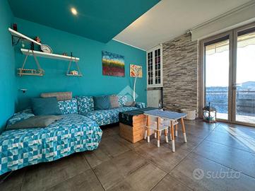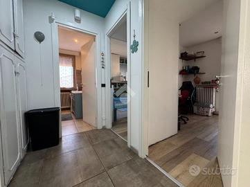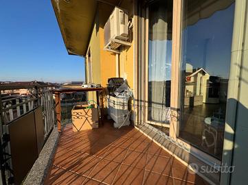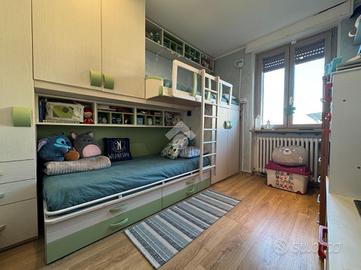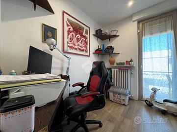 Dall'ingresso si accede alla zona giorno composta da un luminoso e ampio soggiorno con affaccio diretto al balcone e una cucina abitabile. Tramite disimpegno si arriva alla zona notte in cui sono presenti una camera da letto matrimoniale, un bagno finestrato con doccia, una cameretta e uno studio.