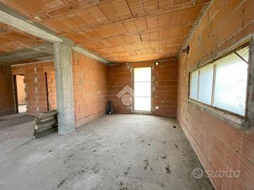 Porzione di bifamiliare di ampia metratura, sviluppata su 3 livelli, con giardino privato che circonda l'abitazione su tre lati.