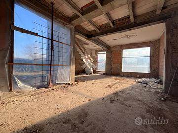 CAMPOLONGO MAGGIORE: in località Bosco di Sacco, porzione di bifamiliare al grezzo con progetto di ristrutturazione già approvato. Al piano terra ingresso, ampio soggiorno separato dalla cucina con angolo cottura con accesso alla lavanderia. Le scale conducono al piano primo dove vi sono tre camere, di cui una matrimononiale, e un bagno con accesso al poggiolo. Retrostante all'abitazione, possibilità di garage e ripostiglio con soppalco. A completare 900 mq di giardino di proprietà.