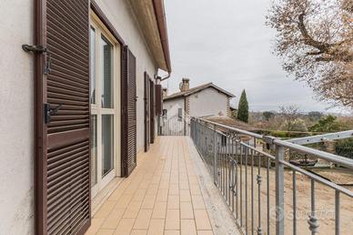 Il piano superiore ospita la zona notte, composta da una camera matrimoniale con accesso diretto al balcone, due ulteriori camere e un bagno finestrato con vasca.