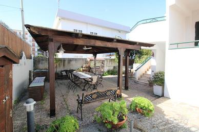 Immersa nell'esclusivo contesto di un parco privato con accesso diretto alla spiaggia, proponiamo in vendita una splendida porzione di bifamiliare con ingresso indipendente.La soluzione, ideale per chi cerca privacy e contatto con il mare, si sviluppa su più livelli sapientemente organizzati:Al primo piano, una scala esterna conduce a un terrazzo d'ingresso che apre su una luminosa zona living con angolo cottura. La zona notte comprende una camera matrimoniale, una cameretta e un bagno. Ogni ambiente gode di ampi terrazzi privati, dai quali è possibile accedere, tramite una suggestiva scala a chiocciola, a un generoso lastrico solare pavimentato: il luogo perfetto per ammirare il panorama in totale riservatezza.Il piano seminterrato è stato rifinito per accogliere ospiti o parenti, offrendo una seconda cucina, un'ulteriore camera da letto e un bagno.L'esterno è il vero cuore della proprietà: una corte esclusiva con gazebo, pensata per cene all'aperto e momenti di relax. La proprietà include un posto auto condominiale e offre la possibilità di parcheggiare altre due vetture all'interno della corte privata. I metri quadrati complessivi, indicati nella presente offerta pubblicitaria, sono calcolati tenendo in considerazione tutte le superfici interne ed esterne dell'immobile con relative pertinenze annesse, adottando i parametri classici per una stima sintetica comparativa come utilizzato nel DPR 138 DEL 23 MARZO 1998.
