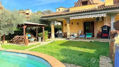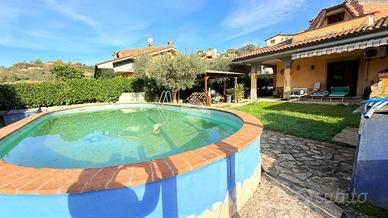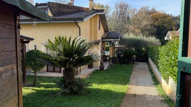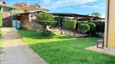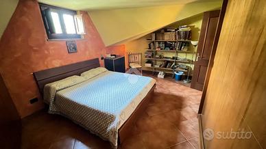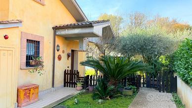 Scopri questa affascinante porzione di villa bifamiliare situata in una tranquilla zona collinare di sole ville, perfetta per chi cerca serenità e comfort. Con una superficie di 120 mq, la casa si sviluppa su due livelli. Al piano terra, troverai un ampio soggiorno con camino, una cucina a vista, una camera matrimoniale, un bagno e un portico ideale per momenti di relax. Il primo piano offre due camere da letto, di cui una con balcone, un disimpegno e un secondo bagno. Il giardino, di circa 400 mq, è un vero e proprio angolo di paradiso, dotato di barbecue, forno a legna esterna, impianto di irrigazione, illuminazione e pozzo di irrigazione condominiale. L'accesso carrabile e pedonale rende l'area esterna comoda e funzionale. La villetta, si presenta in buone condizioni, luminosa. Questa proprietà rappresenta un'opportunità imperdibile per chi desidera vivere immerso nella natura senza rinunciare ai comfort moderni. Per qualsiasi informazione o per fissare un appuntamento potete contattarci ai seguenti numeri: o o scriverci all'indirizzo mail:.