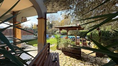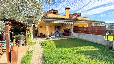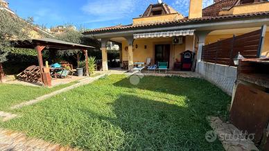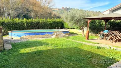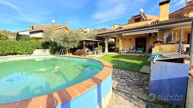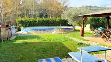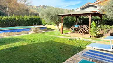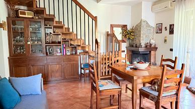 Immersa nella quiete di una splendida zona collinare composta esclusivamente da ville, questa affascinante porzione di villa bifamiliare rappresenta il rifugio ideale per chi desidera vivere circondato dalla natura senza rinunciare a spazio, comfort e funzionalità. La proprietà, luminosa e in ottime condizioni, si sviluppa su due livelli per una superficie di circa 120 mq, offrendo ambienti accoglienti e ben distribuiti. Al piano terra si viene accolti da un ampio soggiorno con camino, cuore caldo della casa e perfetto per trascorrere piacevoli serate in famiglia, affiancato da una cucina a vista che rende l'ambiente conviviale e moderno. Sullo stesso livello trovano spazio una camera matrimoniale, un bagno e un grazioso portico, ideale per colazioni all'aperto, momenti di relax o cene estive. Salendo al primo piano, la zona notte regala ulteriore comfort con due camere da letto, di cui una impreziosita da un balcone panoramico, oltre a un comodo disimpegno e a un secondo bagno. All'esterno, il giardino di circa 400 mq è un autentico angolo di pace: curato e attrezzato con barbecue, forno a legna, impianto di irrigazione, illuminazione e pozzo condominiale per l'irrigazione, rappresenta lo spazio perfetto per vivere appieno ogni stagione, tra pranzi all'aperto, giochi dei bambini e momenti di assoluto relax. L'accesso sia carrabile che pedonale rende l'area esterna pratica e funzionale, completando una soluzione abitativa capace di coniugare il fascino della vita nel verde con tutte le comodità moderne. Una casa pensata per chi sogna serenità, privacy e il piacere di sentirsi ogni giorno in un luogo speciale. Per maggiori informazioni o per fissare un appuntamento, non esitate a contattarci ai numeri o oppure via email.