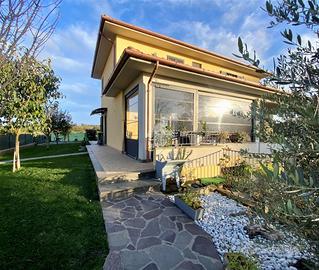 Porzione di villa ultimata nell'anno 2021 , con ottima efficienza energetica grazie al pannello solare per la produzione di acqua calda sanitaria, al riscaldamento a pavimento , alle caldaie a pellet ed a GPL integrate , ai climatizzatori ed agli infissi in Pvc con triplo taglio termico con zanzariere .