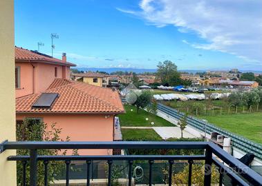 Completano la proprietà balconi con parziale vista lago , portico e curato giardino angolare di 250 mq con impianto di irrigazione .