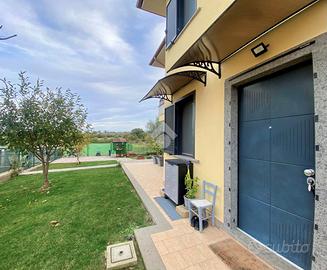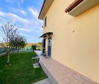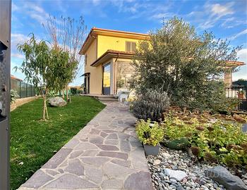 Porzione di villa ultimata nell'anno 2021 , con ottima efficienza energetica grazie al pannello solare per la produzione di acqua calda sanitaria, al riscaldamento a pavimento , alle caldaie a pellet ed a GPL integrate , ai climatizzatori ed agli infissi in Pvc con triplo taglio termico con zanzariere .