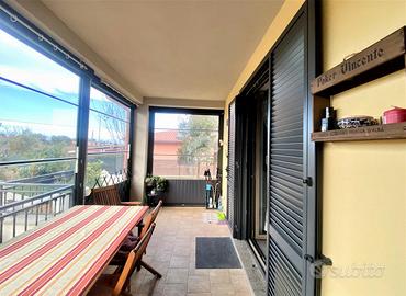 Completano la proprietà balconi con parziale vista lago , portico e curato giardino angolare di 250 mq con impianto di irrigazione .