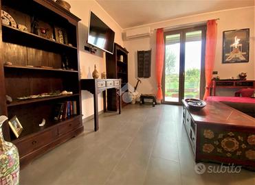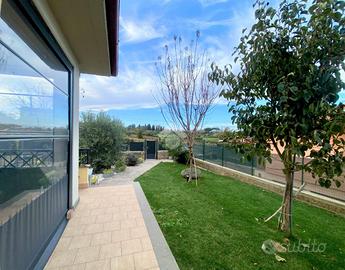 Porzione di villa ultimata nell'anno 2021 , con ottima efficienza energetica grazie al pannello solare per la produzione di acqua calda sanitaria, al riscaldamento a pavimento , alle caldaie a pellet ed a GPL integrate , ai climatizzatori ed agli infissi in Pvc con triplo taglio termico con zanzariere .