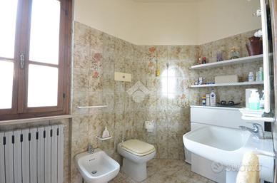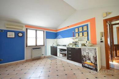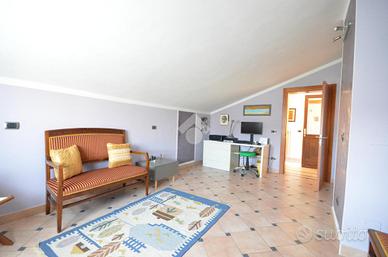 Al primo piano si trova il bilocale, con soggiorno e parete cottura open space, camera matrimoniale, bagno finestrato, lavanderia e ripostiglio. Questa unità è stata completamente terminata nel 2003, compresi la pavimentazione e gli impianti idraulico ed elettrico; si presenta in ottime condizioni.