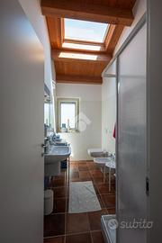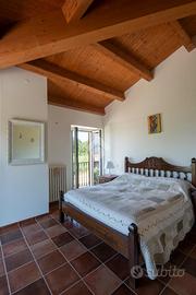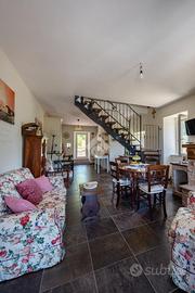 Situata nel borgo antico di San Tommaso, questa dimora indipendente si sviluppa su due livelli: al primo piano troviamo un ampio e luminoso soggiorno con camino, bagno, cucina dotata di accesso diretto al portico-terrazzo e giardino a livello. Tramite la scala interna a vista, si accede al secondo piano dove insistono le due camere da letto matrimoniali, il bagno e i due balconi che offrono splendide viste sulla natura circostante. Inoltre il piano terra ospita una spaziosa taverna, con predisposizione di tutti gli impianti (anche per ulteriore spazio da adibire ad uso abitativo), garage con corte privata antistante, ripostiglio e cantina.