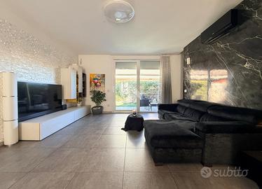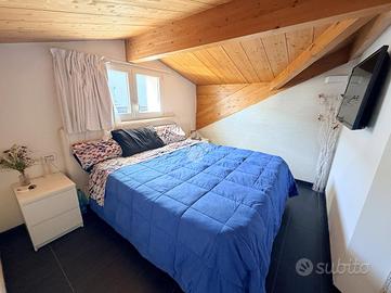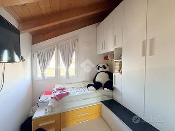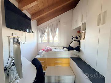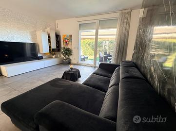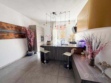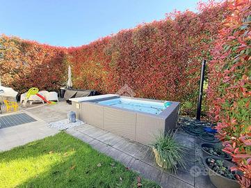 Carate Brianza: zona Valà, Immersa in un contesto tranquillo e riservato, proponiamo all'interno di piccolo villaggio di 7 ville realizzate nel 2016, un'elegante porzione di villa bifamiliare che rappresenta la soluzione ideale per chi desidera indipendenza, comfort e garanzie di sicurezza. L'ingresso pedonale privato introduce a un'abitazione curata in ogni dettaglio, circondata da un piacevole giardino che si sviluppa su tre lati per circa 150 mq, perfetto per vivere momenti di relax all'aperto. Al piano terra si viene accolti da un luminoso salone, affiancato da una cucina abitabile a vista, facilmente separabile per chi desidera ambienti più distinti. Completa il livello un bagno finestrato dotato di vasca idromassaggio e un portico di circa 10 mq, ideale per pranzi e cene all'esterno durante la bella stagione. Salendo al primo piano si sviluppa una mansarda agibile, con travi in legno lamellare a vista, organizzata in quattro camere e una cabina armadio con predisposizione per un ulteriore bagno, offrendo così ampi spazi per tutta la famiglia o per chi necessita di ambienti multifunzionali. Il piano interrato, di generosa metratura, ospita una grande taverna con zona cottura, perfetta per convivialità e tempo libero, oltre a un bagno con doccia e lavanderia, un vano tecnico e un pratico ripostiglio ricavato nel sottoscala. Dalla taverna si accede anche al box doppio in lunghezza, dotato di apertura sezionale motorizzata. La villa si distingue per le finiture moderne e gli impianti tecnologici: isolamento termico con cappotto termico esterno, serramenti in PVC a taglio termico con doppi vetri, riscaldamento a pavimento con gestione indipendente su ogni piano e aria condizionata con pompa di calore. Non mancano impianto antifurto completo di videosorveglianza, ventilazione meccanica controllata, pannelli solari, addolcitore, irrigazione automatica e sistema antizanzare. A rendere questa proprietà ancora più esclusiva è la presenza di una piscina riscaldata
