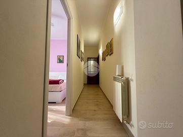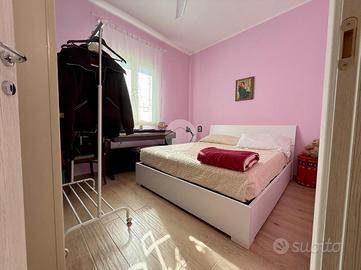 Dal soggiorno d'ingresso si sviluppa un corridoio che collega la zona notte, completata da un ripostiglio, una pratica cabina armadio, un secondo bagno con doccia e due camere da letto ben rifinite, entrambe caratterizzate da buone metrature e luminosità.