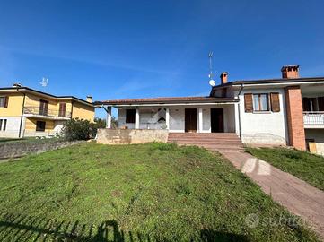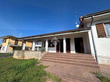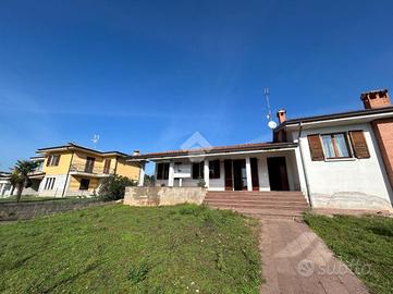 VILLA BIFAMILIARE su piano unico composta da ampio e luminoso soggiorno con affaccio sul portico e sul giardino di proprietà alla quale si accede tramite portafinestra e separata la cucina abitabile.