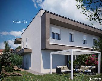 In borgo di nuova urbanizzazione del quartiere di Cibeno nasce Villa Iris. Una villa ad angolo di nuova costruzione realizzata in bioedilizia e con mattone in isotex.