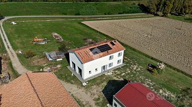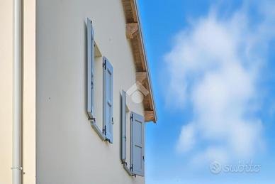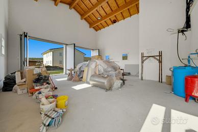 Infissi esterni in legno, predisposizione per camino e climatizzazione.