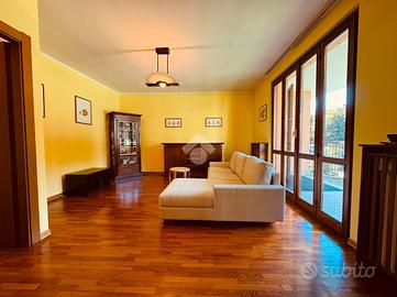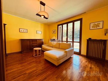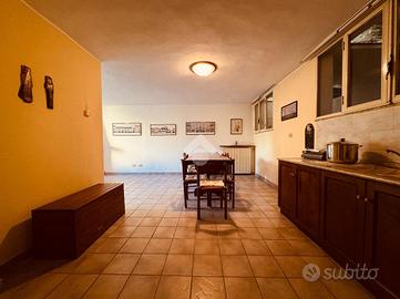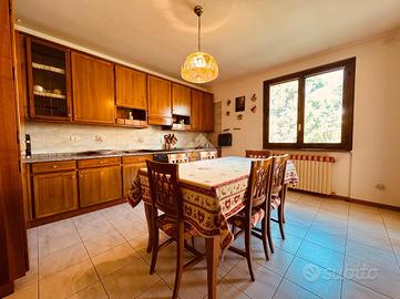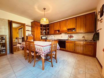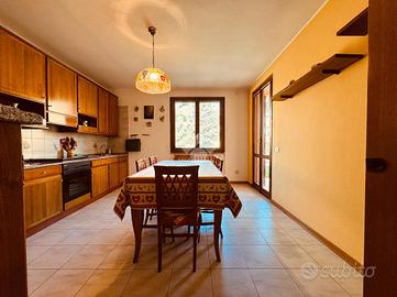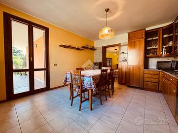 L'ingresso è collocato nella zona giorno luminosa con affaccio sul giardino. La cucina, abitabile, con sfogo esterno sul portico e all'area esterna.