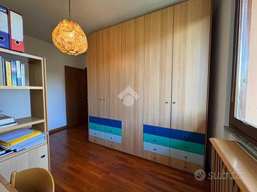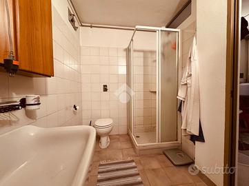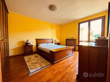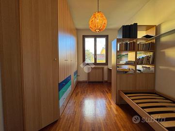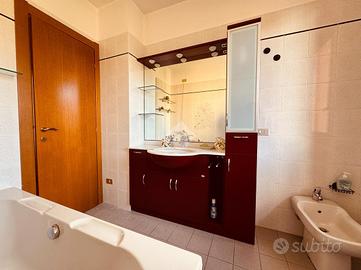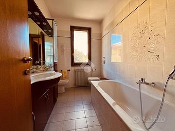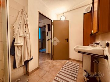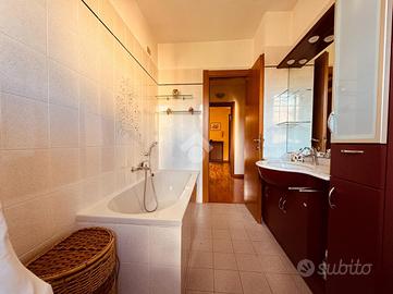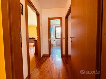 Il disimpegno collega la camera matrimoniale di ampia metratura, la seconda camera ed un servizio finestrato dotato di vasca.