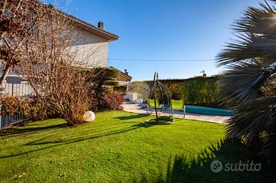 In centro paese, in posizione comoda a tutti i servizi, proponiamo splendido appartamento al piano terra inserito in una villa trifamiliare, caratterizzato da un'ottima esposizione e da spazi esterni di grande pregio.