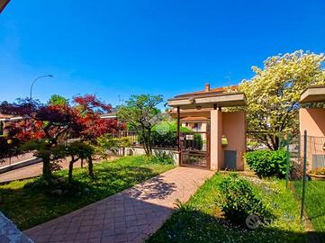 Nella piacevole e tranquilla cornice della zona Annunciazione di Cassano d'Adda, a poca distanza dal centro nevralgico del paese con tutti i suoi servizi, esercizi giornalieri e mezzi di trasporto proponiamo in vendita signorile porzione di villa bifamiliare del 1994. Con i suoi lineamenti a metà strada tra lo stile classico delle colonne e dei mattoni e quello più spiccatamente avvenieristico della sagoma e delle sue ampie finestre, la villa, in pronta consegna, offre spazi d'altri tempi e ambienti che fanno del comfort e della facilità di arredo i propri punti di forza. La struttura espone sui tre lati migliori, Sud, Est e Ovest e permette di godere pienamente di sfoghi esterni ben armonizzati con la tranquillità della via a fondo chiuso in cui si colloca. Il piano terra della casa ha accesso da un vialetto che, abbracciato dal giardino frontale, accompagna fino al primo porticato di ingresso, in pieno stile americano. Oltre la porta blindata si viene accolti dall'immenso salone e dalla cucina abitabile, entrambi con accesso al giardino principale e alla bellissima terrazza. Immaginate di avere uno spazio dove poter allestire un salottino o una tavolata con angolo barbecue da condividere con amici e parenti. Il livello terra si completa di un piccolo bagno e un utile disimpegno. Il piano superiore della casa, raggiungibile da una comoda scala interna in muratura, si presenta con soffitti regolari e a differenza delle villette più comuni, consente l'accesso anche ad un grande vano sottotetto da utilizzare come ulteriore vano ripostiglio. Questa sezione della casa si estende a partire da un ampio disimpegno centrale, in quelli che sono i locali notte. La camera matrimoniale beneficia un terrazzo di 20 mq che come un'alcova regala momenti di puro relax, due camere doppie con secondo balcone, un utile ripostiglio e il luminoso bagno accessoriato di doccia e vasca. L'ultimo piano della casa è quello interrato dove trovano spazio ottimi ambienti accessori. I due