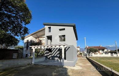 San Zeno-Cassola Proponiamo in vendita una porzione di bifamiliare completamente ristrutturata, situata in una zona verde e tranquilla, ma al contempo vicino ai principali servizi. Questo immobile rappresenta la soluzione ideale per chi cerca il connubio perfetto tra comfort, indipendenza e qualità della vita. Descrizione dell'Immobile: Accedendo dal passo carraio, si viene accolti da un ampio giardino di oltre 500 mq, un luogo perfetto per trascorrere momenti conviviali all'aperto con famiglia e amici. Il portico conduce al piano terra, dove si sviluppa la zona giorno della casa, composta da una cucina funzionale, un soggiorno separato e un bagno finestrato completo di doccia. Dalla cucina, è inoltre accessibile l'ampia cantina situata nell'interrato. Salendo al primo piano tramite scale dotate di illuminazione Led a filo, si trovano due camere matrimoniali, una delle quali è dotata di un balconcino privato. Completa questo piano il secondo bagno, anch'esso finestrato e provvisto di doccia. Infine, l'ultimo piano ospita una mansarda caratterizzata da due ambienti, ideali per creare ulteriori camere da letto o per realizzare uno spazio hobby e/o palestra. Ristrutturazione e Dotazioni: L'immobile ha recentemente beneficiato di un intervento di ristrutturazione straordinaria, che ha incluso il rifacimento del tetto e delle grondaie, l'applicazione del cappotto termico con tinte, e la realizzazione di un pozzo perdente. Gli interventi interni hanno riguardato il rifacimento dell'impiantistica, la sostituzione degli infissi con modelli in PVC a doppio vetrocamera, e la ristrutturazione dei bagni e dei pavimenti. Incluso nel prezzo di vendita sono previsti l'installazione delle porte interne, delle tapparelle automatizzate, i parapetti delle scale interne e del balconcino e quattro split dell'aria condizionata con il relativo macchinario. Punti di Forza: Questi elementi distintivi rendono questa proprietà particolarmente appetibile: l'indipendenza, gli s