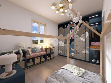 Gli spazi interni sono ben distribuiti e comprendono una zona giorno da 40 mq e le tre camere da letto, offrendo ampie possibilità di personalizzazione per adattarsi alle esigenze di ogni famiglia.