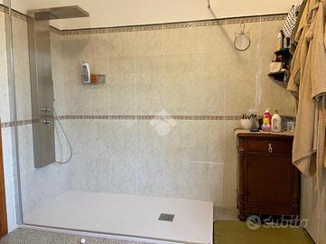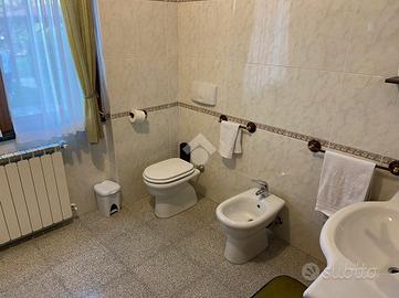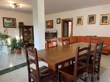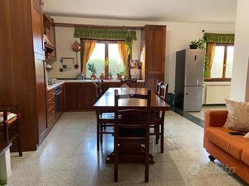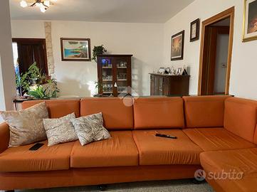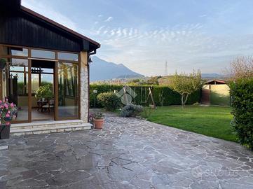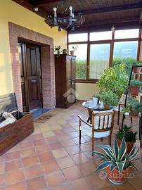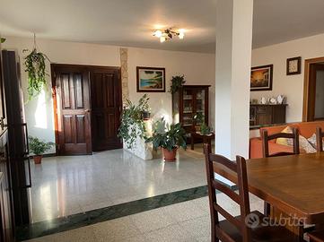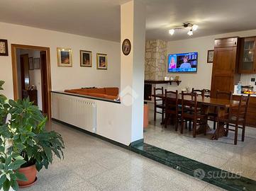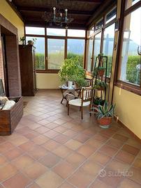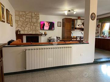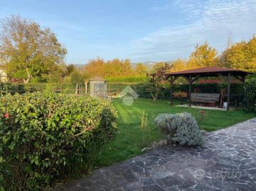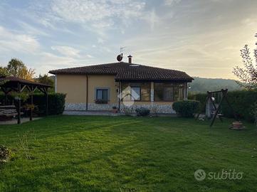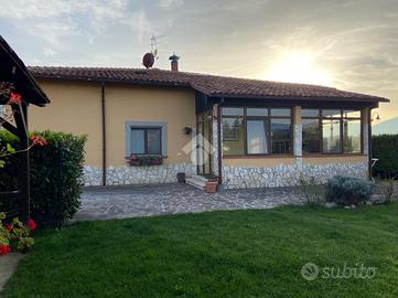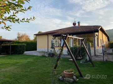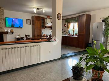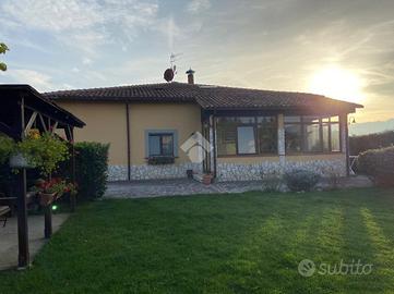 CASTEL DI SANGRO-Loc. Sant'Angelo: disponiamo di porzione di VILLA bifamiliare su 2 livelli con ampio GIARDINO perimetrale di ca. 700 mq. ben curato, composta al piano terra da veranda, ampio salone con camino ed angolo cottura, 2 camere matrimoniali e bagno; al piano primo mansardato da 2 camere, bagno e ampio deposito sottotetto. Ottimo stato
