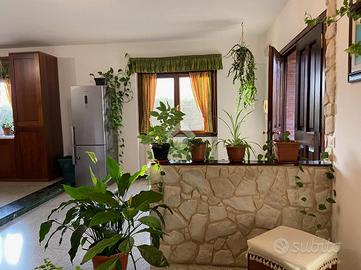 CASTEL DI SANGRO-Loc. Sant'Angelo: disponiamo di porzione di VILLA bifamiliare su 2 livelli con ampio GIARDINO perimetrale di ca. 700 mq. ben curato, composta al piano terra da veranda, ampio salone con camino ed angolo cottura, 2 camere matrimoniali e bagno; al piano primo mansardato da 2 camere, bagno e ampio deposito sottotetto. Ottimo stato