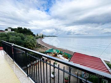 L'ingresso avviene tramite un cucinino verandato, seguito da un disimpegno che conduce ai locali interni: una luminosa camera matrimoniale e una cameretta, entrambe con affaccio su un terrazzo panoramico vista mare e spiaggia, ideale per momenti di relax e convivialità.