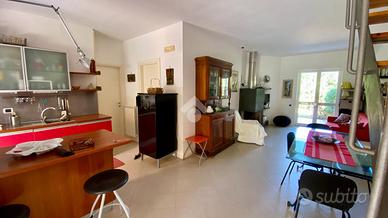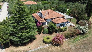 PORZIONE DI BIFAMILIARE in zona residenziale, immersa nel verde dell'immediata periferia di S. Maria, a 2 km dalla spiaggia della località Lago, con ampi spazi esterni, disposta su tre livelli e con ingresso indipendente. Al piano terra troviamo un'ampia zona giorno con angolo cottura e camino alla quale si accede attraverso un patio esterno di 20 mq, sullo stesso livello una camera da letto matrimoniale con bagno e al piano sottotetto a cui si accede da una scala in legno dal soggiorno, troviamo un unico grande ambiente con bagno e piccolo balconcino antistante. La superfice interna complessiva del piano terra e del sottotetto è di 85 mq. All'esterno della cucina e della zona pranzo uno splendido porticato di 30 mq, attrezzato per il soggiorno all'aperto. Ubicato al piano interrato, a cui si accede dall'esterno un ampio locale cantina di complessivi 60 mq. La proprietà è completata da 1.400 mq di terreno in parte a giardino e in parte coltivato con alberi da frutto.