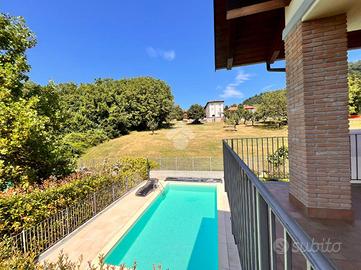In un contesto residenziale riservato e tranquillo ai piedi della collina, porzione di villa bifamiliare disposta su due livelli, oltre a un piano seminterrato, dotata di ingresso indipendente, ampio cortile privato, terrazza e piscina.