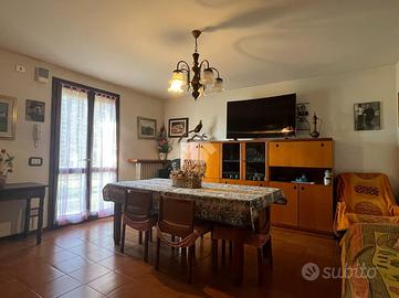 Cavriago, villa abbinata con ampio giardino privato e ingresso indipendente, situata in strada chiusa, zona verde e tranquilla.