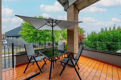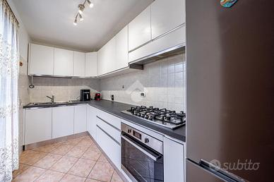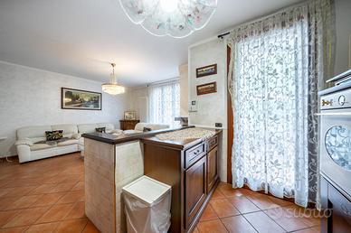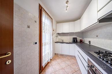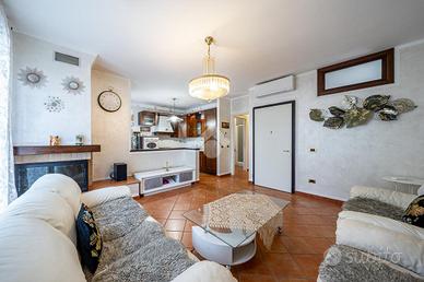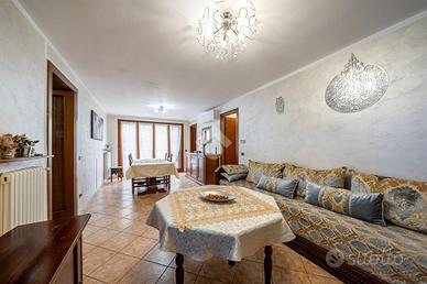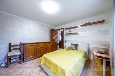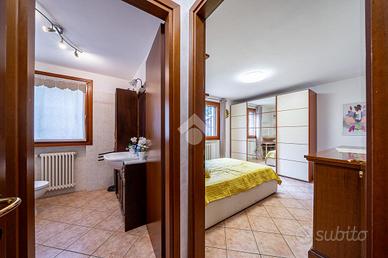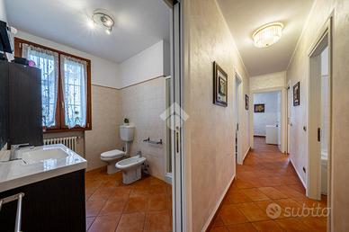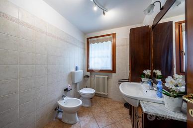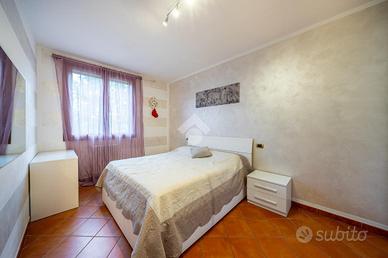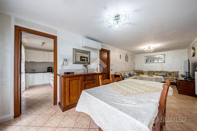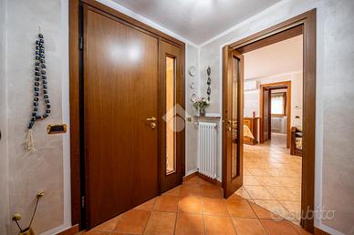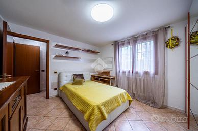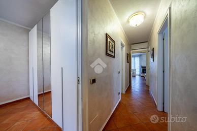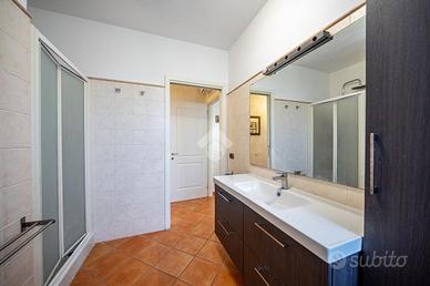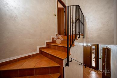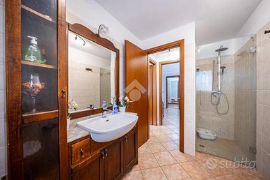 A completare l'immobile abbiamo un garage ampio di 34mq accessoriato di zona lavanderia, posto auto esterno, illuminazione esterna, video sorveglianza, irrigazione esterna, inferriate, zanzariere e doppi vetri.
