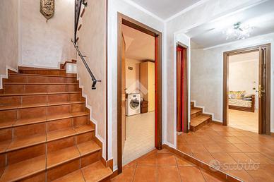 Primo piano accessibile tramite scala interna, dove troviamo subito un ampio soggiorno luminoso con un camino, angola cottura e acesso alla terrazza abitabile di 15mq, zona notte composta da tre camere da letto matrimoniali e due bagni dicui uno cieco con la vasca.