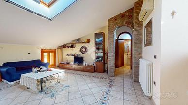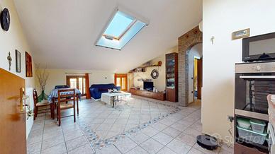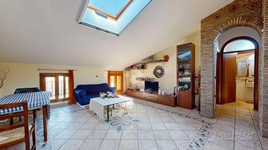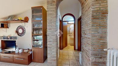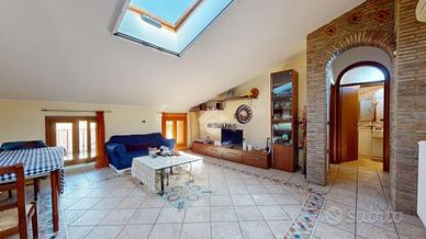 Una mansarda abitabile, con solaio in laterocemento intonacato, pareti chiare e finestre che catturano la luce della campagna di Casumaro.
