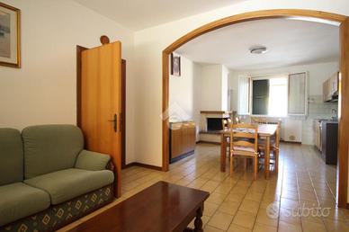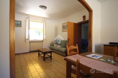 All'ingresso troviamo l'ampio soggiorno con cucina, il bagno e due camere matrimoniali di cui una con cabina armadio.